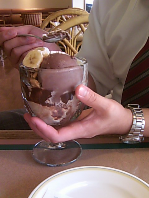 で、帰宅前にチョレートサンデーが食べたい!(食べたやん・・・)というので、ファミレスに寄りました。