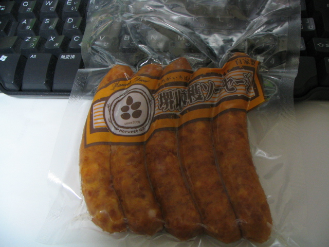 「ハーベストの丘」の販売所のウインナーソーセージ。チーズ入り。