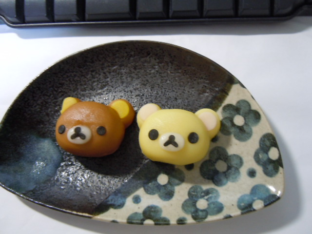 リラックマはプリン味でコリラックマはミルク味と表記されていましたが、まぁよくある練り切りの味です。甘い。でも小さい(4センチくらいかな)ので平気。