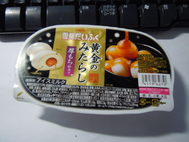 ロッテより2017年1月31日新発売。一番外側の餅部分が通常よりも厚めの層でできているようです。バニラアイスの中はあまじょっぱい、まさにみたらしのあんが。