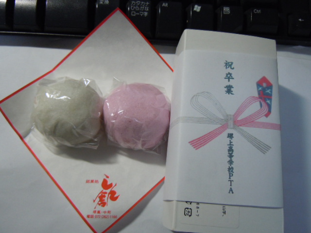 卒業式の日の写真に紅白まんじゅうしか載せられない私ですみません。