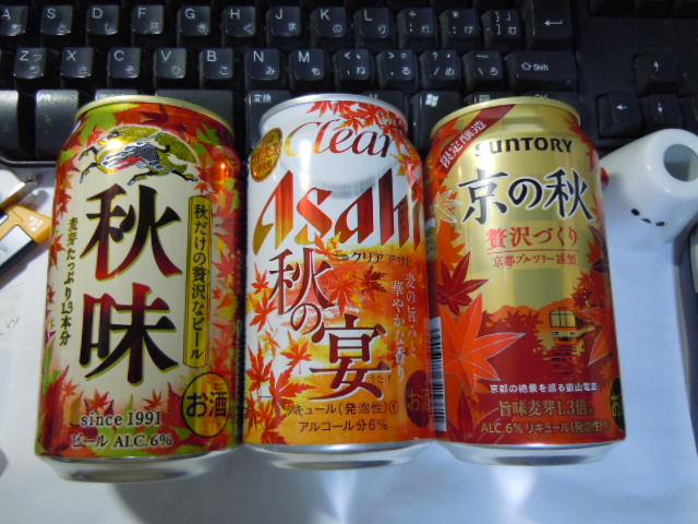 2018年8月21日秋季限定新発売「クリアアサヒ秋の宴」「サントリー京の秋 贅沢づくり」「キリン秋味」。アサヒビールの「食楽」っていうのも同日発売だと思ったんですが、見当たりませんでした。