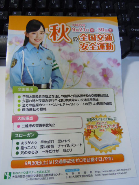 9月21日から30日までの期間なのに、1か月前に運転者講習会って早いなぁと思いながら、地区の交通指導委員会から設営・受付の手伝いに行ってました。あれは交通安全協会と警察がやってます。