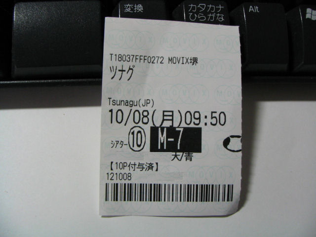 もう周りも涙ぼろぼろなんですが、私の隣席に居た一人で観にきてらした男性(・・・そんなに若くはない兄ちゃん)が、序盤から盛大に泣いてらっしゃって・・・(-_-;)要所要所で波がくるとすごい泣いてはりました。