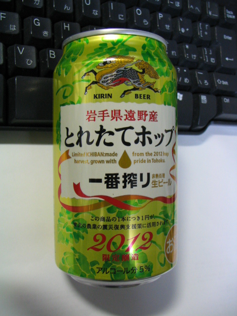 岩手県遠野市で今夏収穫されたホップを使って作った一番搾りです。2012年10月31日数量限定発売。