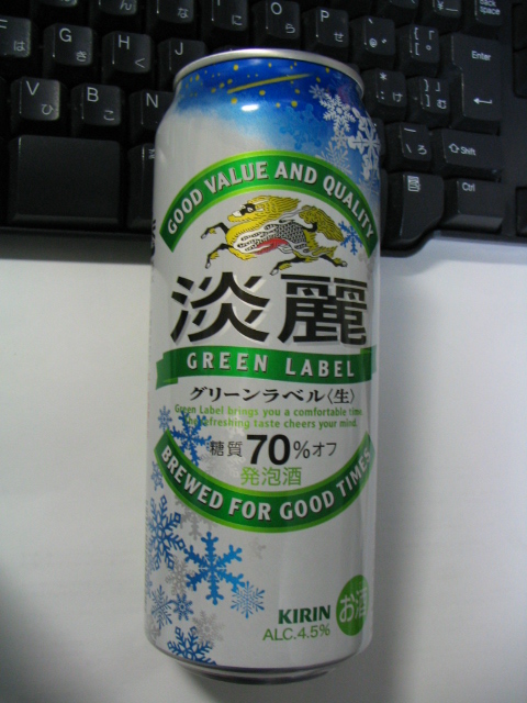 キリン。や、別に普通の淡麗ですけど・・・なんか冬っぽい雪の結晶をあしらった缶になってたのでつい。