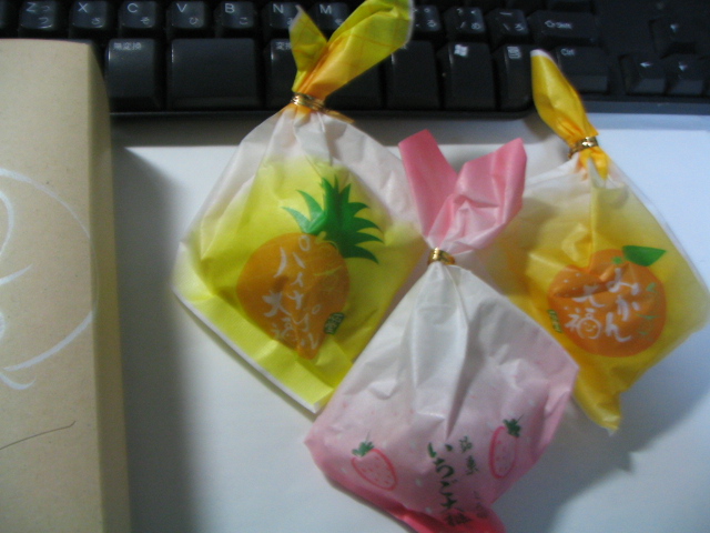 パイナップル・いちご・みかんの大福。パイナップルでっかーい!