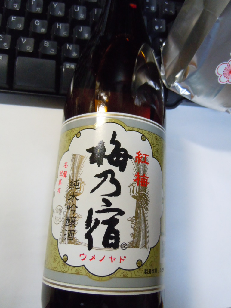 葛城の梅乃宿酒造。これは定番の「紅梅 純米吟醸」です。