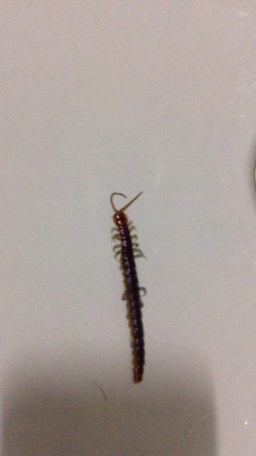 剣道着は藍色が落ちるのでそれだけ別で洗濯するのですが、今日洗濯機の中から胴着を取り出し終えて、洗濯機の中に何か革の切れ端?みたいなのが底に見えたのでつまみあげると、ムカデでした。