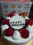 長男のバースデーケーキ。地味。てか、真上から撮るとおかしいな。なんやわからん。