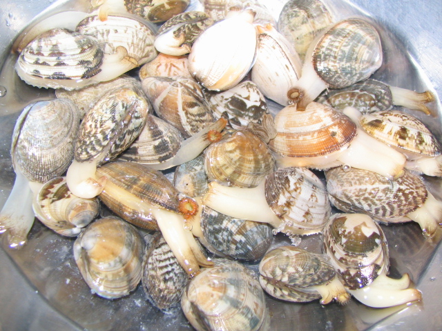 砂出しさせてたら、すんごいリラックスしてるように見えました、あさりたち。