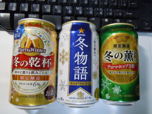 「冬の乾杯」「冬物語」「冬の薫り」いずれも2015年9月29日期間限定新発売。