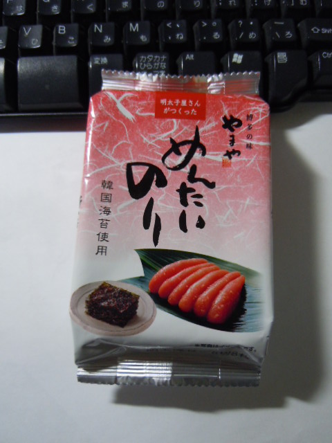 福岡・やまやの海苔。味付き韓国のりに明太子風味の何かがまぶされてます。たらこではないのが逆にすごいなと。『明太子風味顆粒』ってなんやねん(笑)