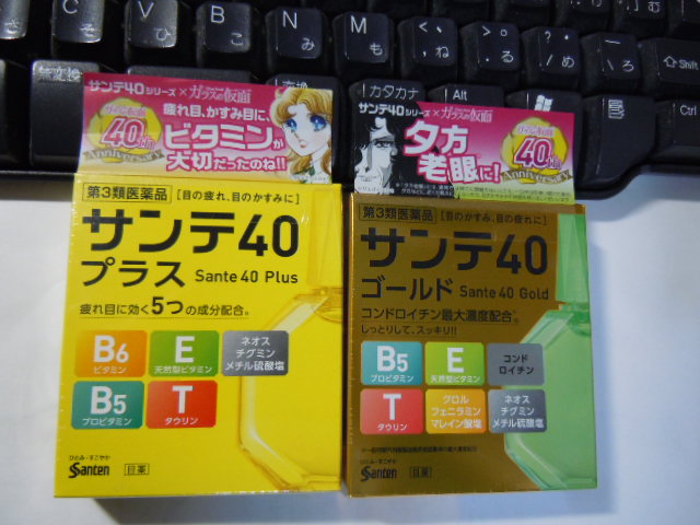 疲れ目・かすみにと目薬を使うんですが…このシリーズが、今年連載40周年を迎えた「ガラスの仮面」とコラボしていてパッケージ上部にキャラクターのイラストがぺらっと貼られています。