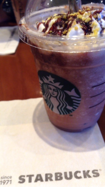 スタバのこの冬のメニュー。中に小さなチョコパフ?の粒が入ってるのがちょっと邪魔。