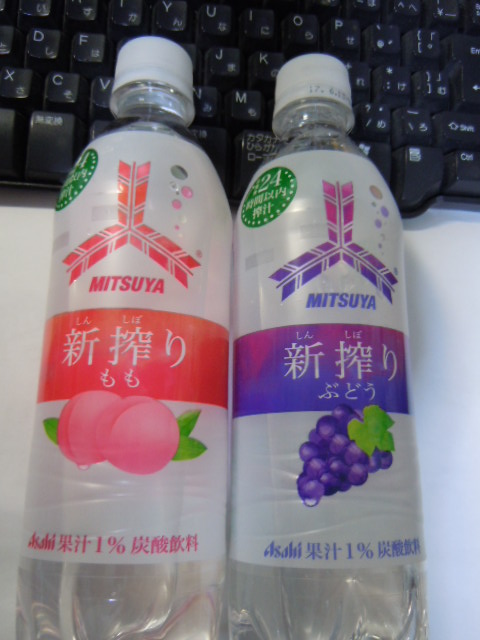 「三ツ矢 新搾り ぶどう」「三ツ矢 新搾り もも」