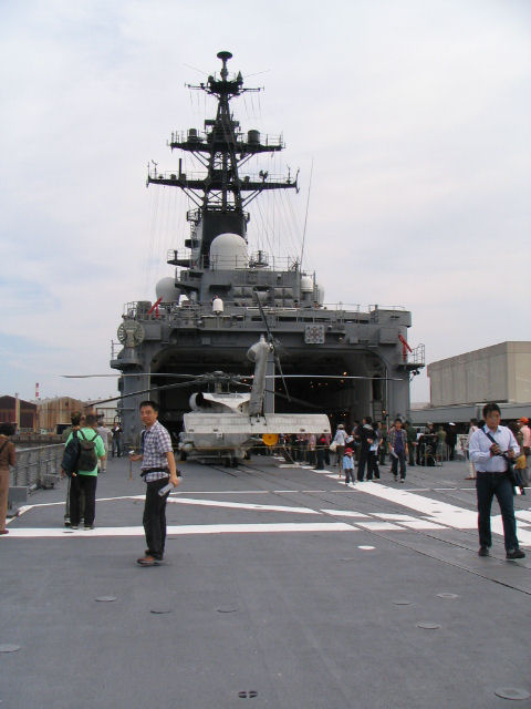 今年の2月にみた護衛艦「やまゆき」は哨戒ヘリコプターが一機搭載で3千トンクラスの船でしたが、ひえいは3機搭載で5千トン。海上自衛隊で一番大きい「ひゅうが」は1万4千トン弱で11機ものヘリが搭載できるDDHなんで、さぞかし大きいんでしょうねぇ。