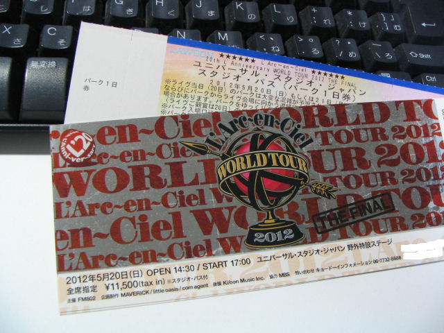 帰宅したら、来月のラルクアンシエル「WORLD TOUR 2012THE FINAL」のチケットが届いてました!