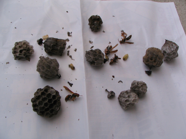 手の届く範囲の巣は全て取っ払った!が、高いところは風で殺虫剤のスプレーが届きにくいので止めました。