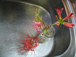 庭の彼岸花が咲き始めました。あちこちでばらけて咲かずに一斉に咲いてくれたら、私の望むところの光景に近付くのに・・・!